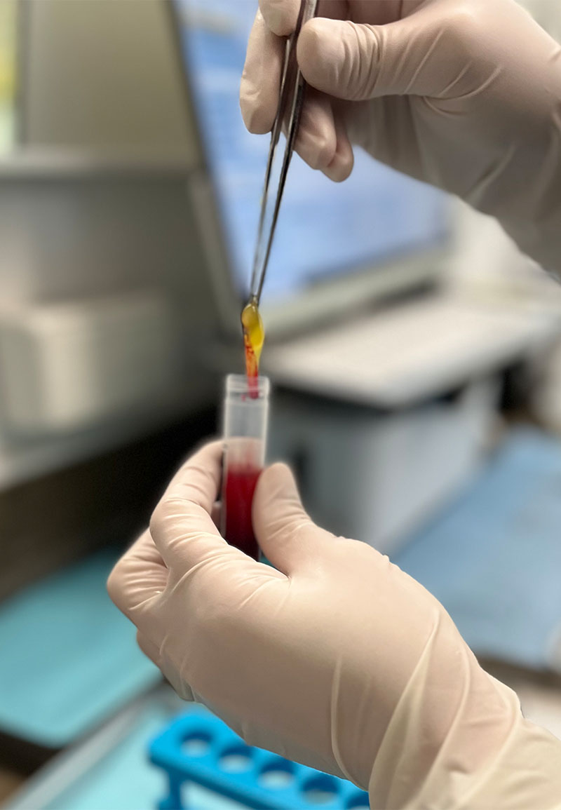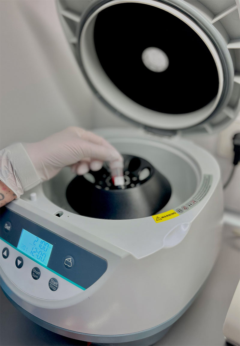- Die Eigenbluttherapie PRF beschleunigt mithilfe von patienteneigenen Wachstumsfaktoren den Heilungsprozess nach einem Knochenaufbau.